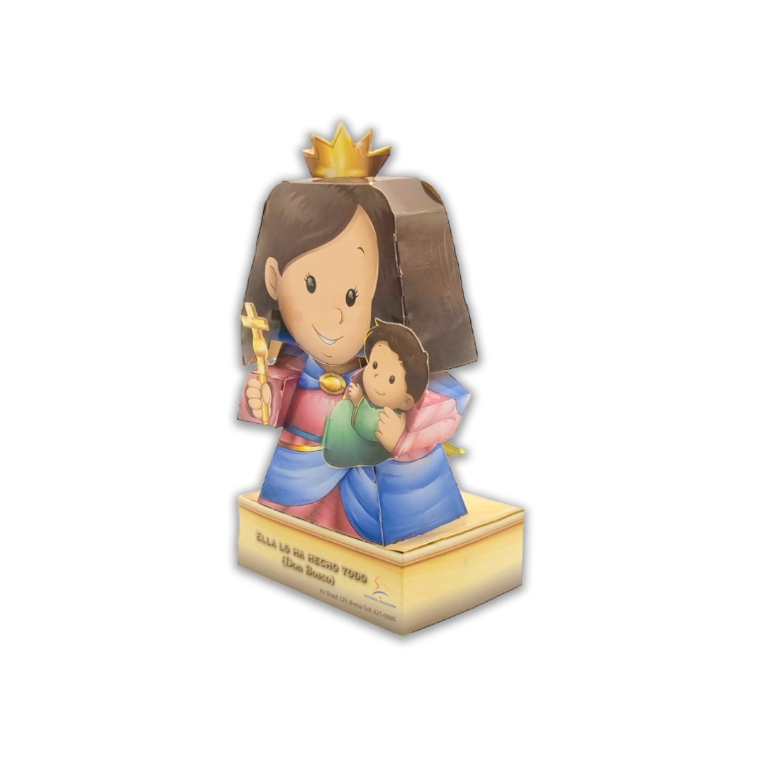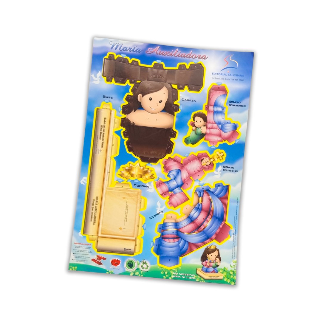 Figura armable de María Auxiliadora. ¡Para divertirse en familia y que los chicos aprendan! este armable ayuda al desarrollo de la coordinación visomotora, la destreza motriz fina y promueve la habilidad óculomanual para el desarrollo de la lectoescritura.