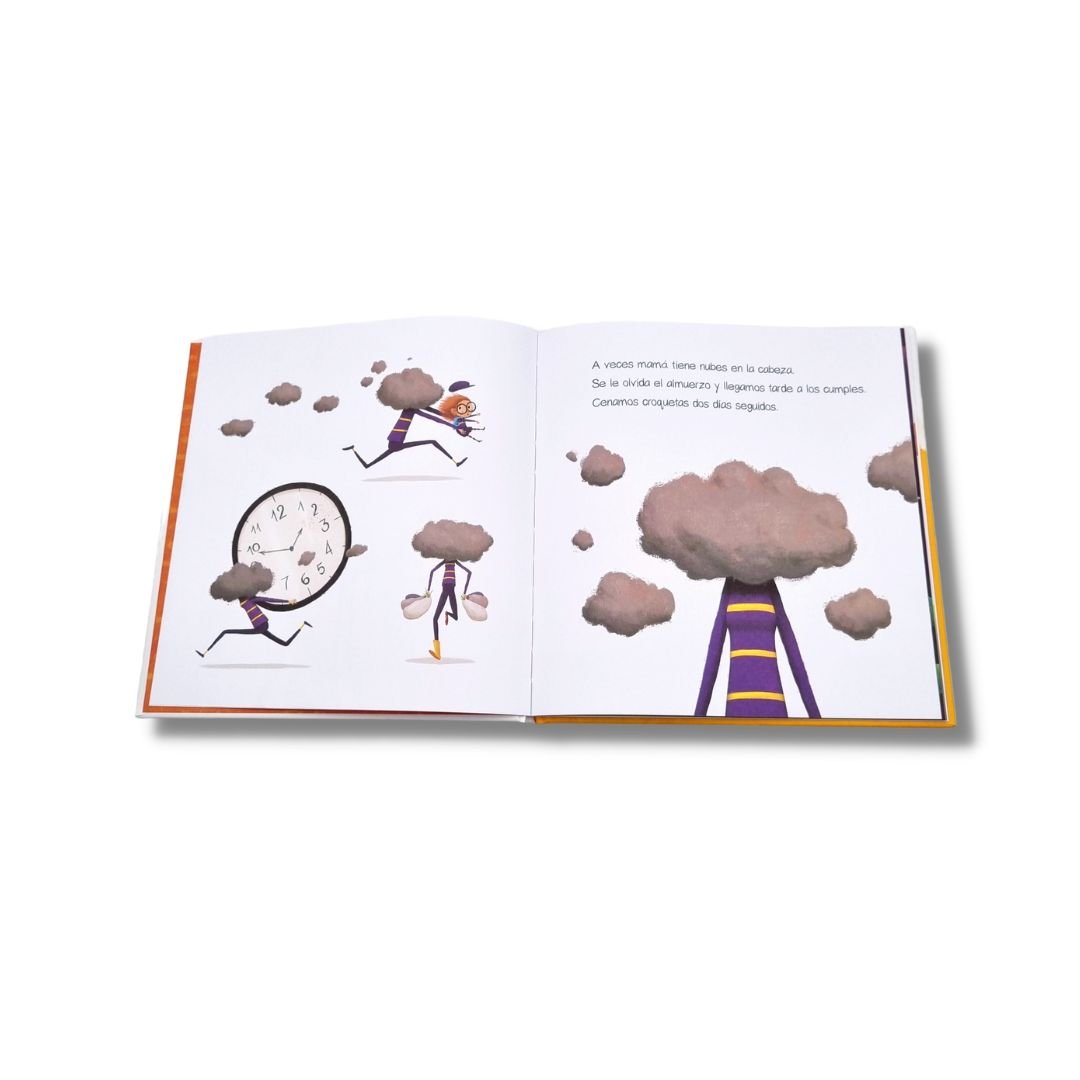 A veces mamá tiene truenos en la cabeza: habla muy alto y con los dientes juntitos. A veces tiene nubes en la cabeza: se le olvida el almuerzo y llegamos tarde a los cumples. Otras veces tiene un arcoíris en la cabeza: canta en el coche y me da muchos besos. ¿Será posible que yo también tenga truenos, nubes y arcoíris en la cabeza?