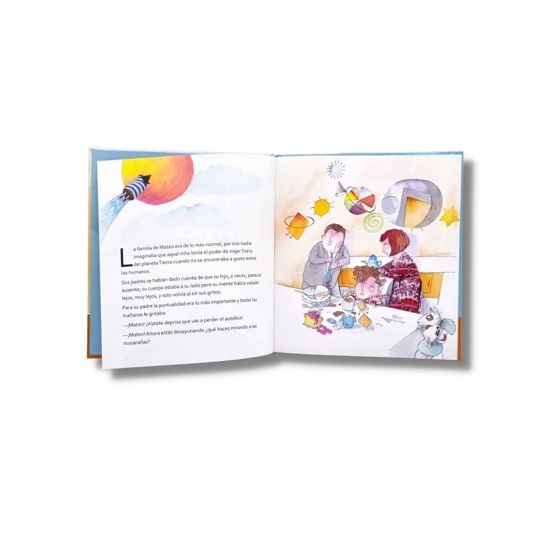 La familia de Mateo es bastante peculiar. Su padre es un maniático de la puntualidad, a su madre le horrorizan las manchas y su hermana mayor está obsesionada por los colorantes y los gérmenes. Entre todos le ponen muy nervioso y por eso está casi siempre enfadado, hasta que descubre que puede teletransportarse a otro planeta donde se siente mejor.