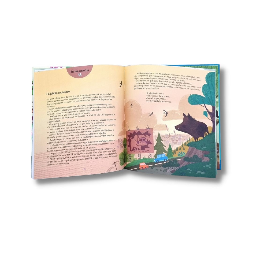 Este libro nos ofrece dos relatos para cada día: uno más corto y sencillo que podrá leer el niño o la niña, y otro más largo y elaborado que le podrán leer los adultos. En conjunto, 56 historias para ir a dormir: 28 en las que las niñas y los niños toman la palabra para decir «yo te leo», y 28 más en las que se intercambian los papeles y «tú me cuentas».