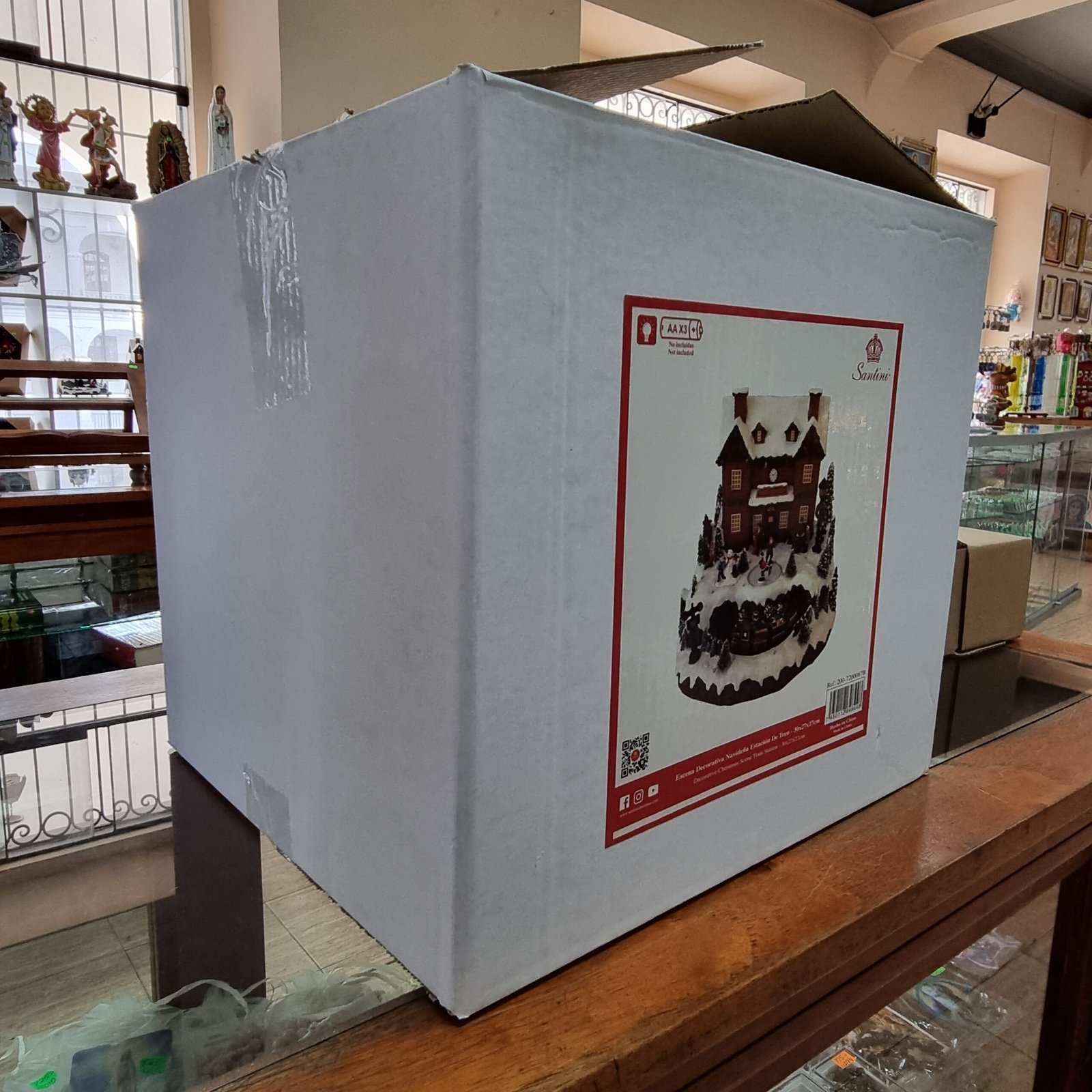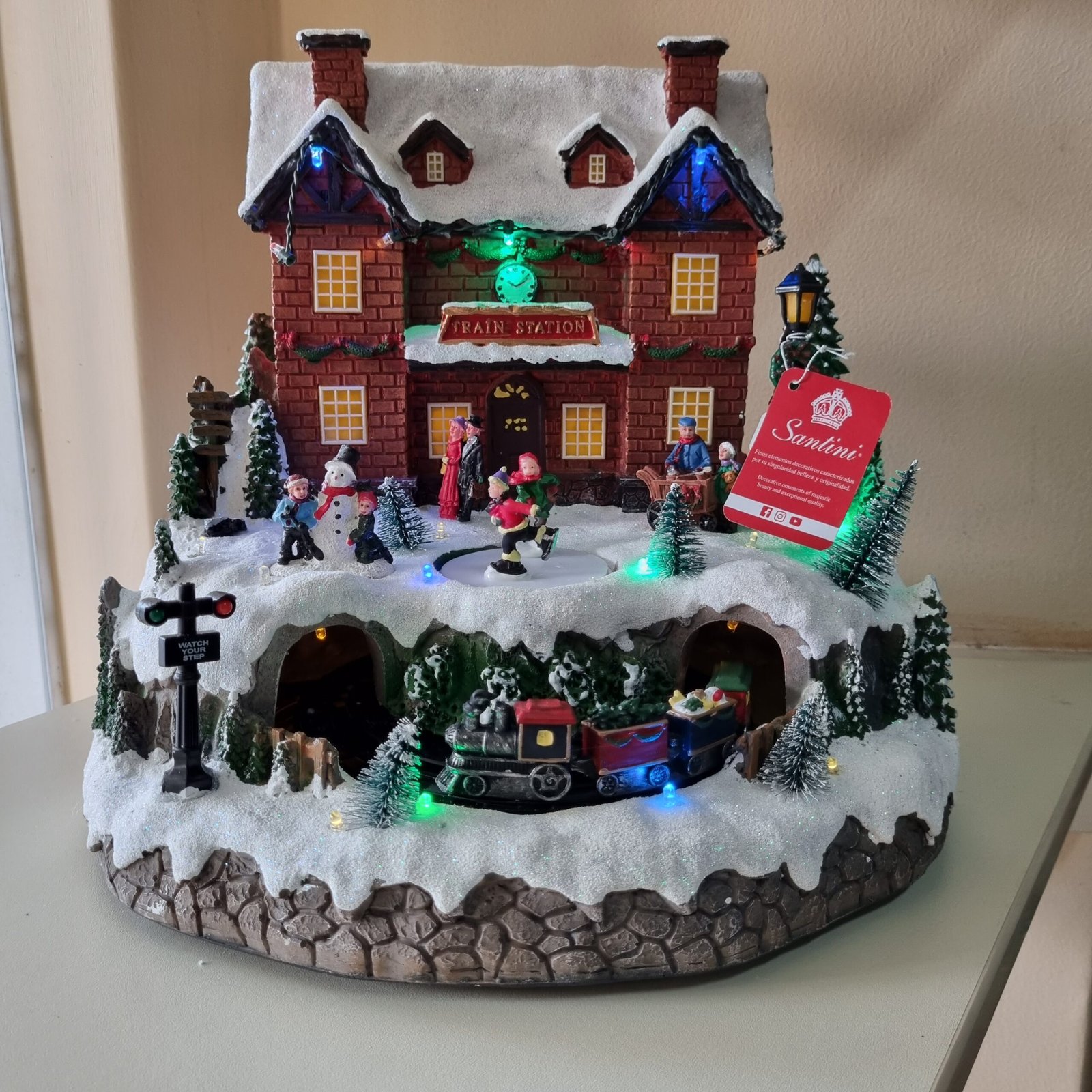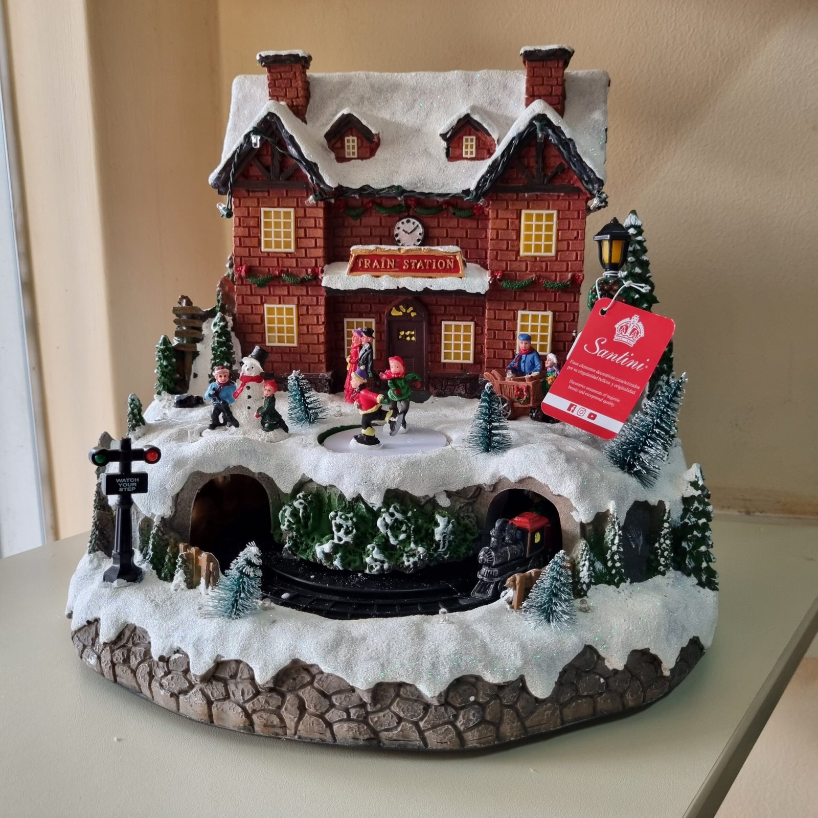 Estación de tren navideña con luz, música y movimiento *No incluye baterías