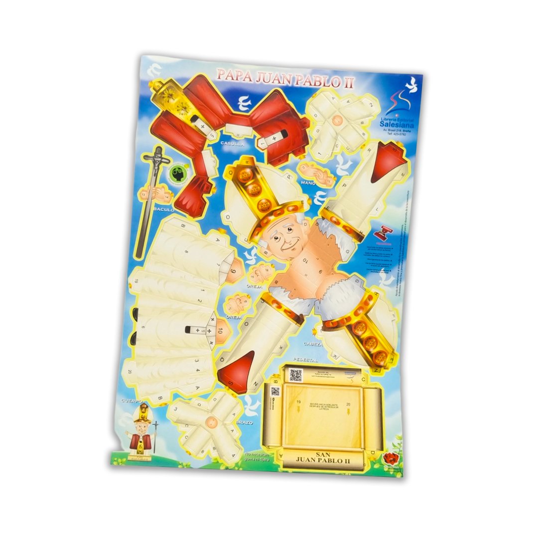 Figura armable de Juan Pablo II. ¡Para divertirse en familia y que los chicos aprendan! este armable ayuda al desarrollo de la coordinación visomotora, la destreza motriz fina y promueve la habilidad óculomanual para el desarrollo de la lectoescritura.