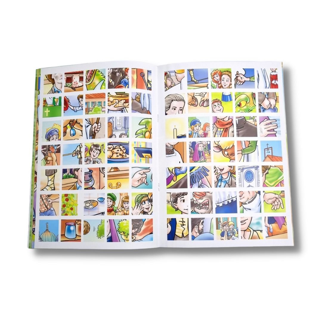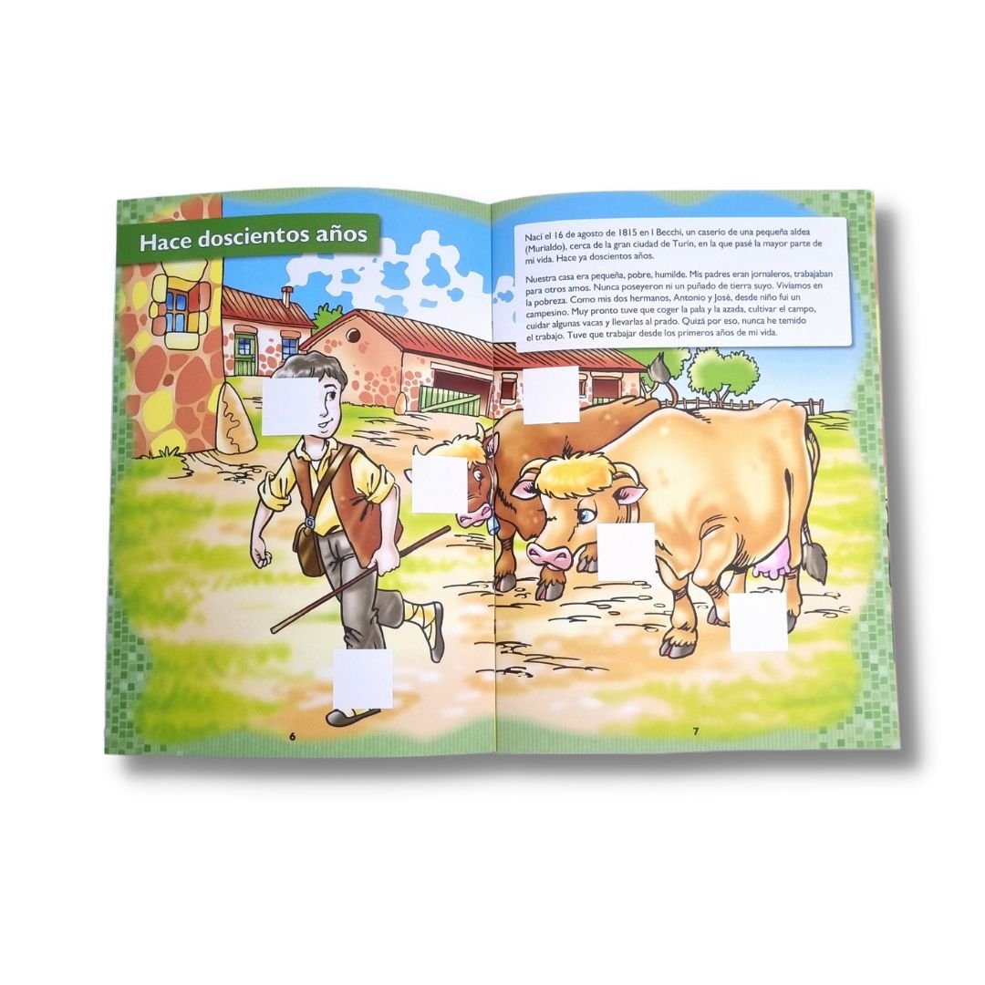 ¡Hola, soy Don Bosco! En apenas once escenas, ilustradas con sugerentes dibujos, que hay que completar con pegatinas, el Santo de los jóvenes relata la aventura de su vida, desde su niñez en el caserío de I Becchi hasta sus últimos años vividos en la ciudad de Turín. La narración se funde con el dibujo formando una unidad que emociona y atrae.