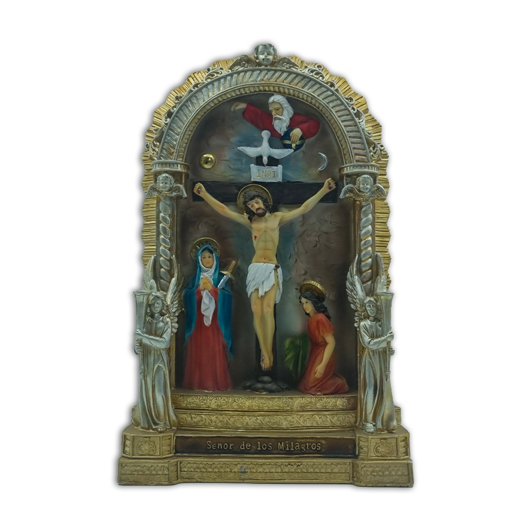Lleve consigo la devoción y el poder milagroso del Cristo de Pachacamilla con esta exquisita imagen del Señor de los Milagros. Fabricada en poliresina de alta calidad, este artículo religioso combina durabilidad con un detallado acabado artístico, logrando una representación fiel y delicada de la icónica imagen del Señor de los Milagros.