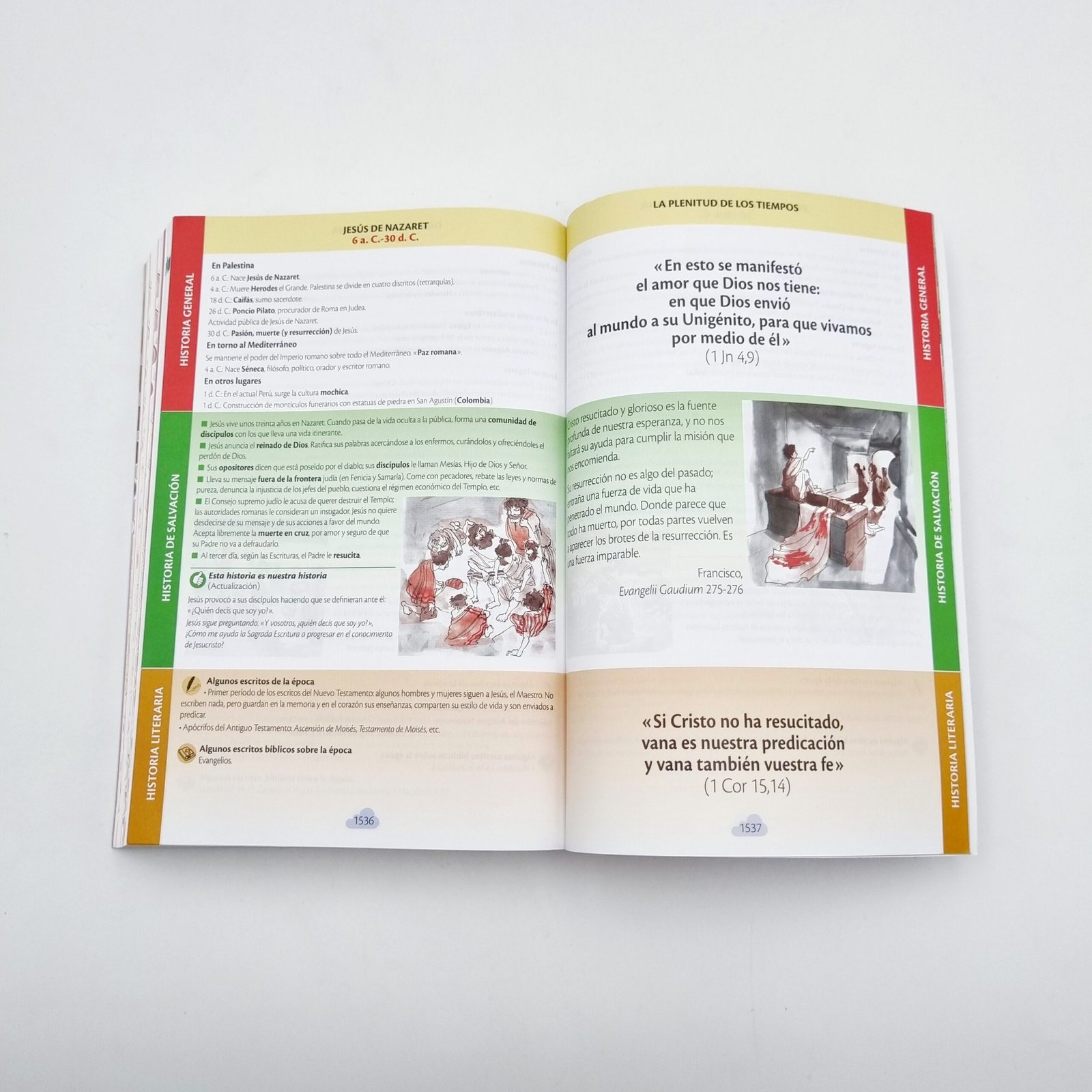 • Más de 200 páginas de preliminares y apéndices con materiales didácticos: vocabulario bíblico, índices temáticos, lecturas bíblicas, lectio divina, cronología bíblica, unidades didácticas…