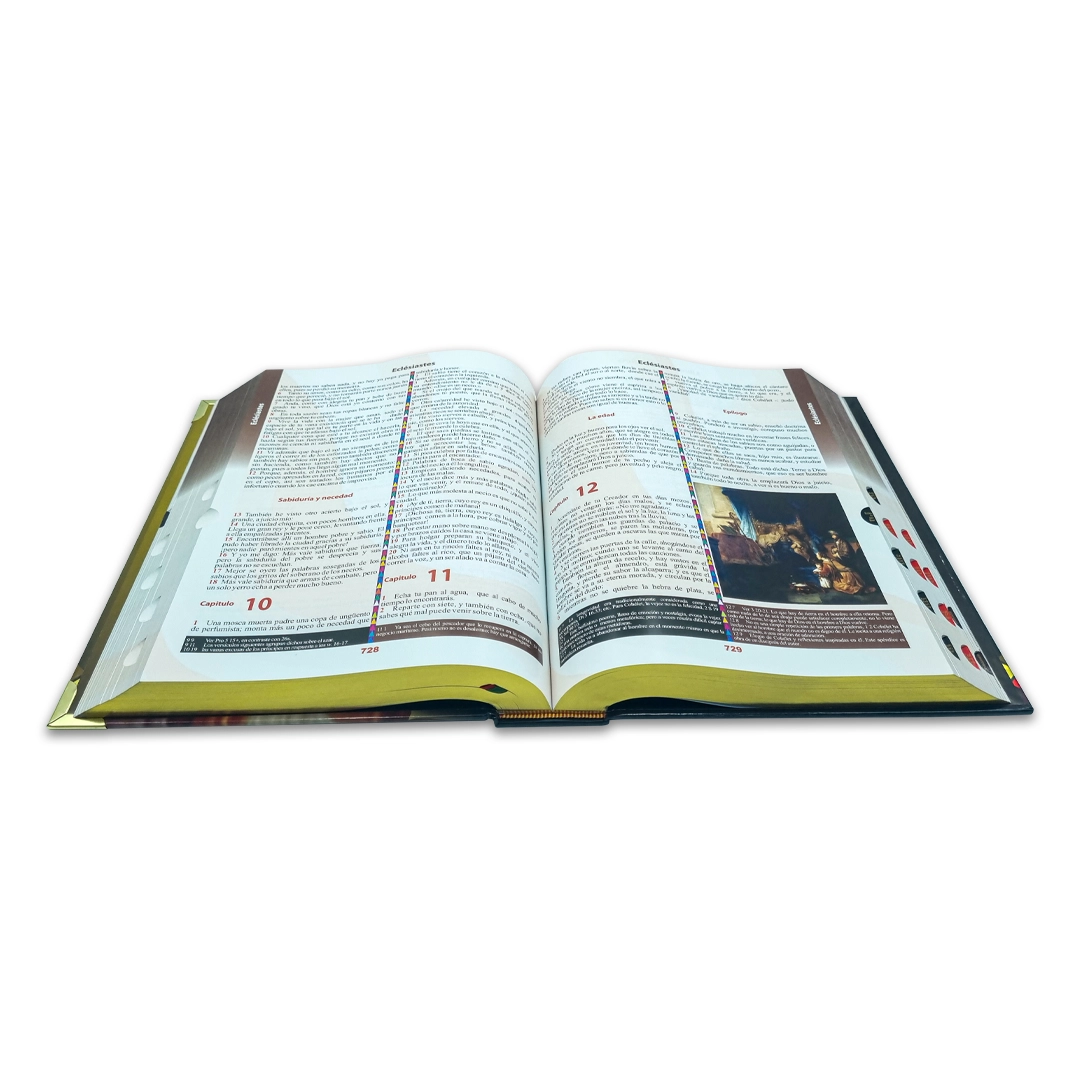 Adéntrate en las páginas de La Sagrada Biblia Universal de GMD Ediciones, una edición de colección diseñada para los apasionados de la Palabra. Esta Biblia Grande no solo destaca por su imponente tamaño, sino también por su rigurosa fidelidad a la traducción de la Vulgata Latina. Se ha logrado una armoniosa concordancia con textos renombrados como la Biblia de Jerusalén y la Biblia Latinoamericana.