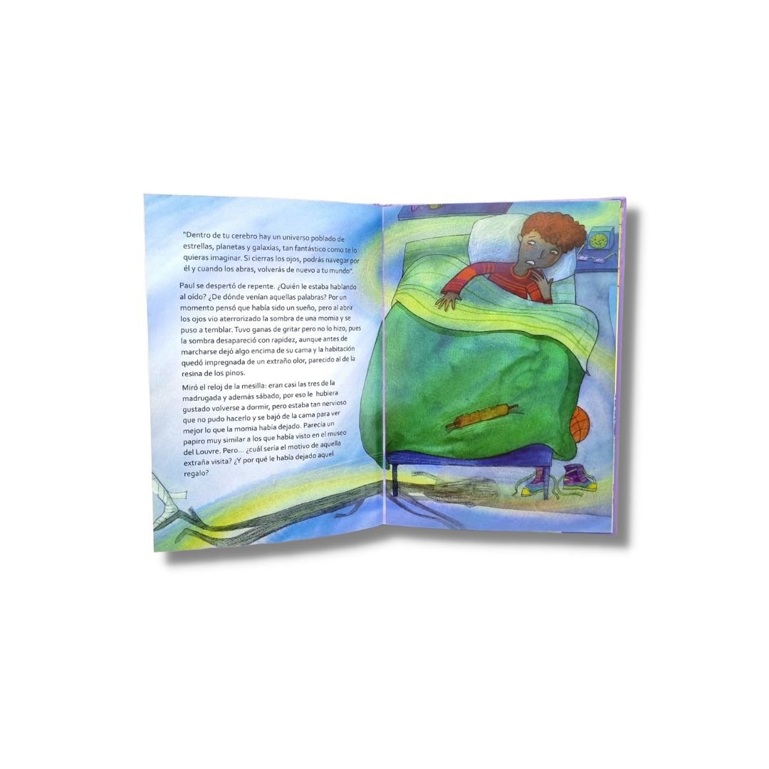 Una noche Paul se despierta muy asustado al escuchar una voz desconocida que le habla al oído. Cuando abre los ojos ve a una momia y descubre que le ha dejado un papiro encima de la cama. Su hermana Helen, que está enferma en un hospital, se convierte en su confidente, y juntos ponen en práctica las lecciones que la momia les da sobre el arte de la imaginación. Gracias a ellas Helen se recupera con rapidez y Paul supera uno de sus grandes miedos.