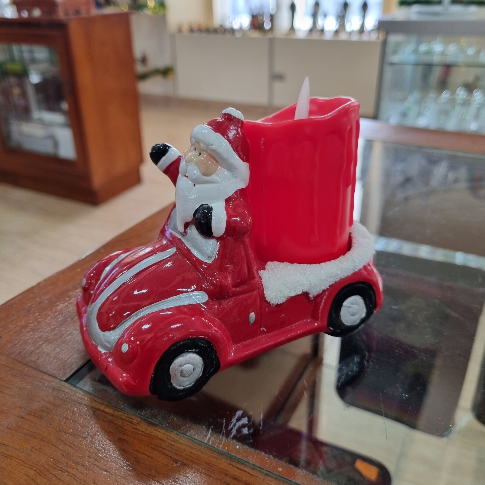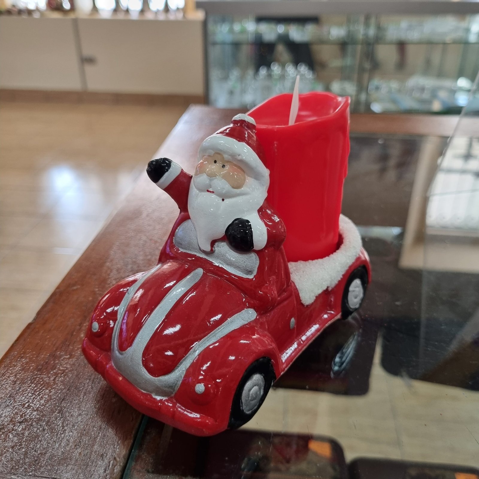 Papá Noel en auto con vela
