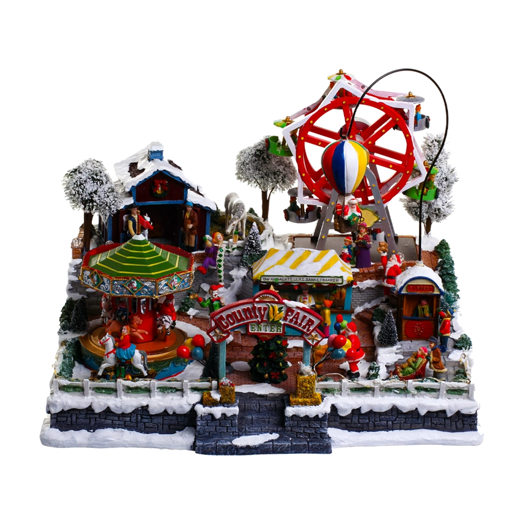 Transforma tu hogar en un mundo mágico con este impresionante parque navideño. Esta pieza presenta una feria invernal completamente detallada con luces brillantes, música festiva y movimiento que encantará a toda la familia. Incluye una rueda de la fortuna, un carrusel y globos aerostáticos giratorios, que dan vida a la escena.