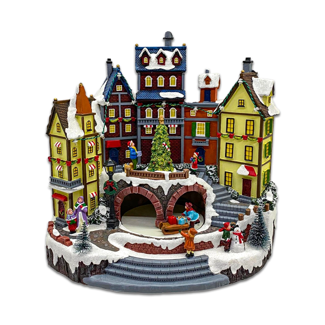 Esta Ciudad Navideña con luz a batería es una escena encantadora y detallada que captura la esencia de la temporada festiva. Perfecta para agregar un toque de calidez y magia a su decoración navideña, esta pieza representa un pintoresco paisaje invernal, con edificaciones cubiertas de nieve y luces cálidas que brillan suavemente, creando una atmósfera acogedora y festiva.