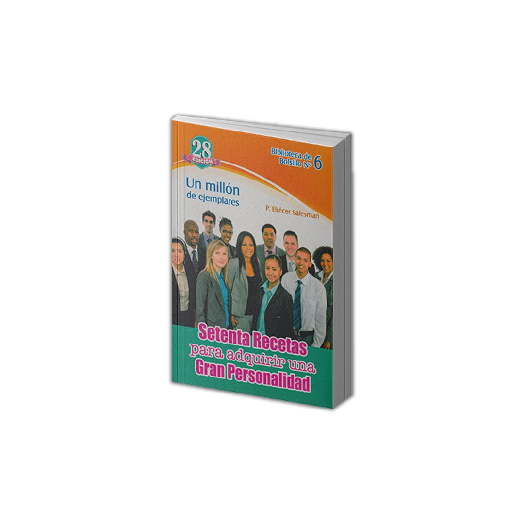 Este librito de bolsillo presenta Setenta Recetas Para Adquirir Una Gran Personalidad, extractado del libro del mismo autor titulado “Secretos Para Triunfar en la Vida”, todo a la luz del Evangelio. Escrito por el P. Eliécer Sálesman del Apostolado Bíblico Católico.