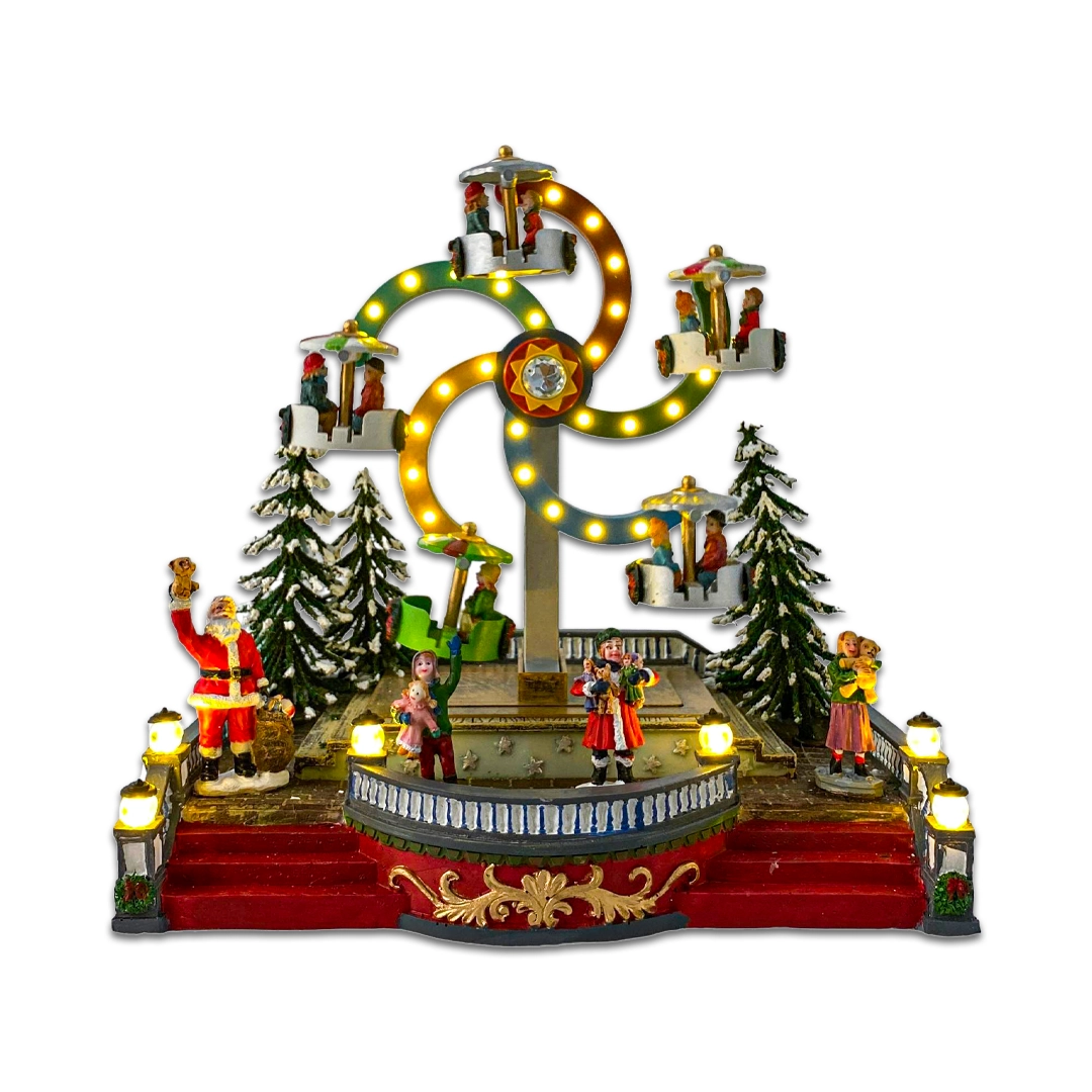 Esta Escena Navideña con Carrusel Luminoso a Batería es una pieza decorativa única que combina la belleza tradicional de un carrusel con la magia de la iluminación navideña. Perfecta para capturar la atención y deleitar a personas de todas las edades, esta escena es ideal para crear un ambiente festivo y acogedor en su hogar durante la temporada navideña.