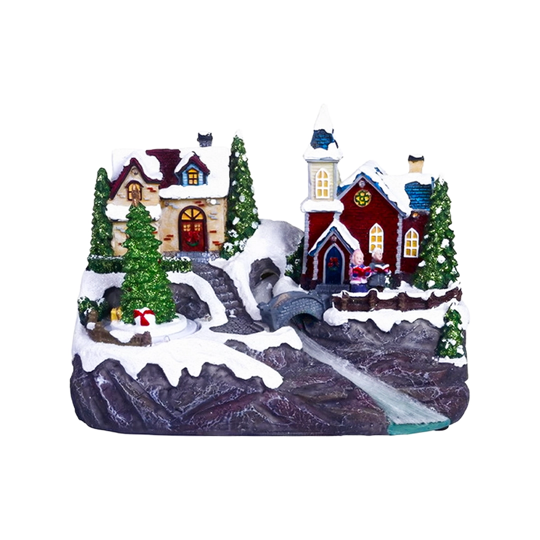 Crea un ambiente mágico con esta hermosa villa navideña iluminada. Diseñada con detalles encantadores que capturan la esencia de la Navidad, incluye casas decoradas con nieve, árboles de Navidad e iluminación LED que funciona con pilas (no incluidas). Perfecta para decorar cualquier espacio de tu hogar, brindando calidez y alegría durante las festividades.
